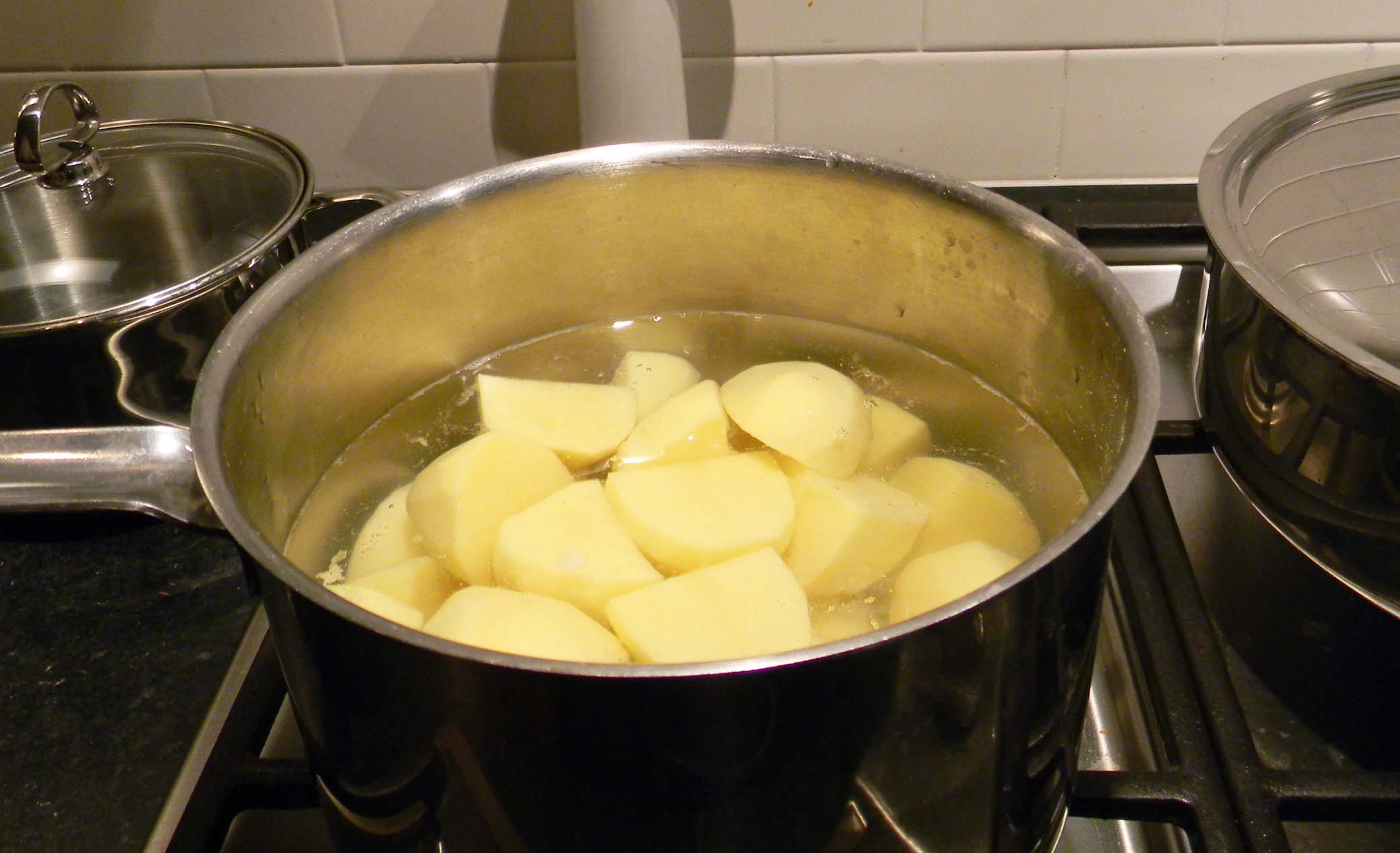 PotatoesWe serve Poggi’s treasure with traditional mashed potatoes and Umbrian lentils. The heaps of round, shiny lentils represent money and the casing signifies a purse. Who doesn’t need this delicious financial buona fortuna for the New Year?