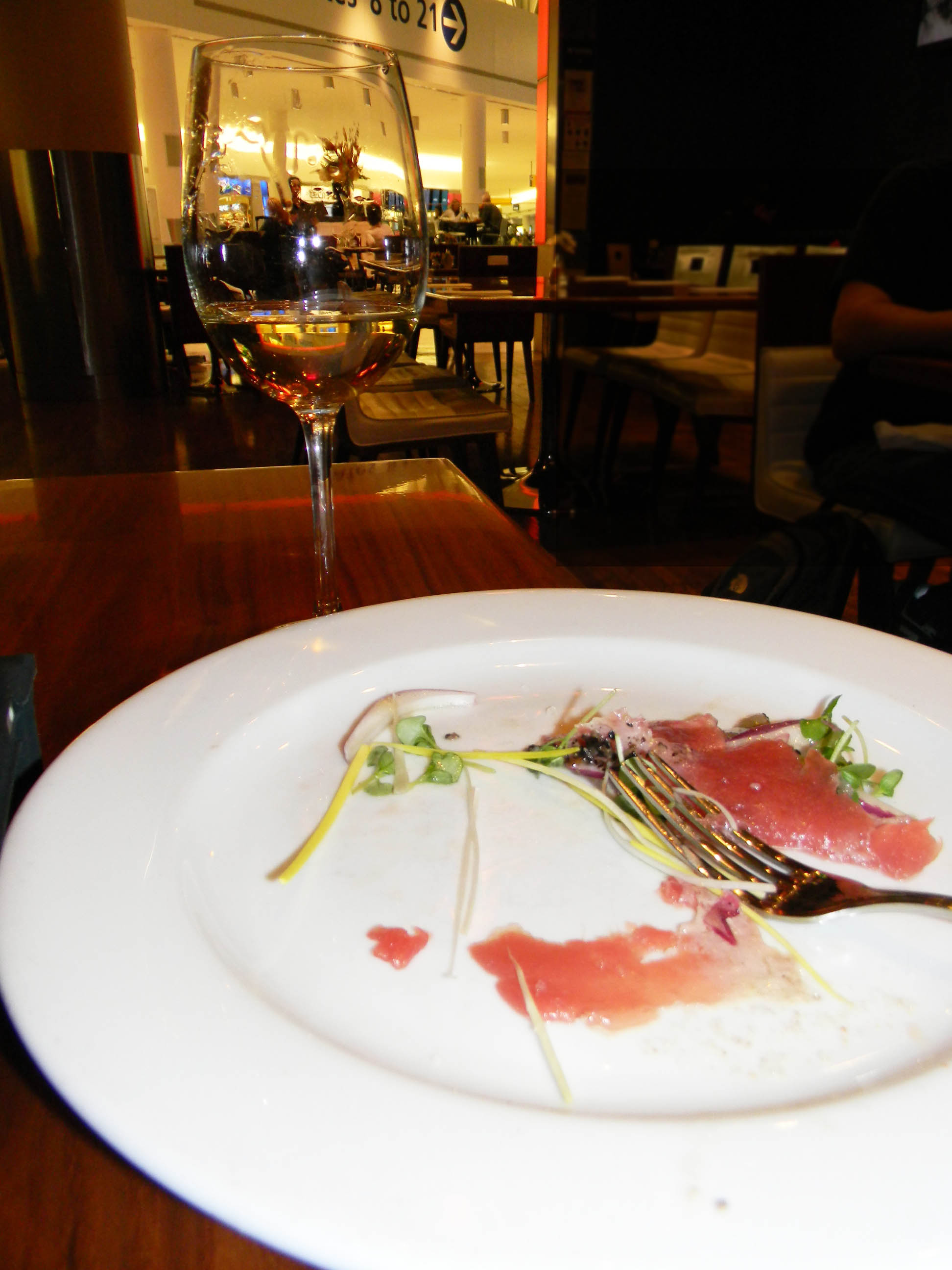 Trees in the parkLa Dolce VitaAfter a fully productive day, I recharge at JFK airport’s AeroNuova with a plate of tuna tartare – not bad. The respectable wine list is mostly Italian, and there are plenty of outlets for your iPad. Universal Italian gesture