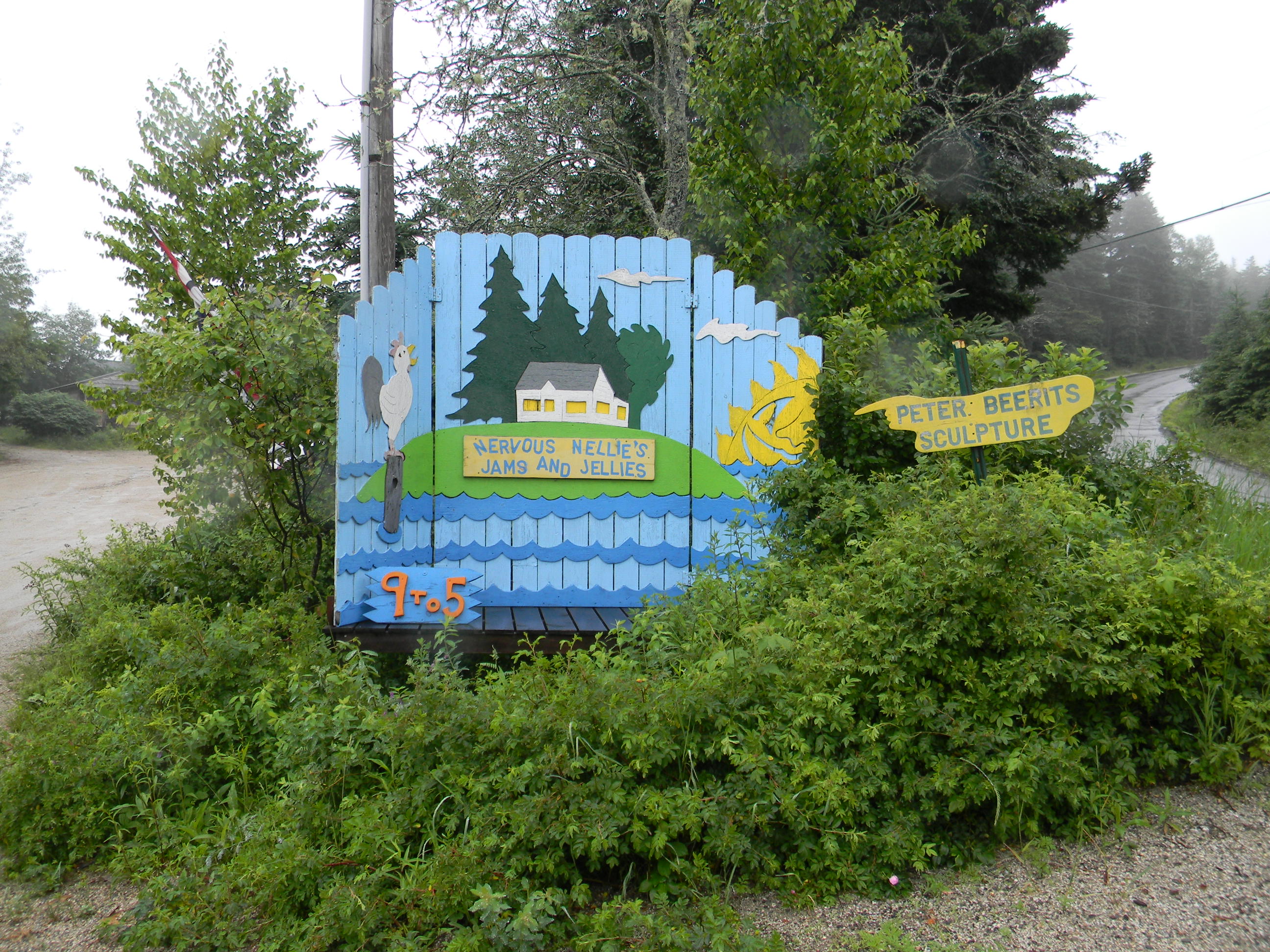 Another sweet treat on Deer Isle is Nervous Nellie’s Jams and Jellies. Sarah likes the strawberry rhubarb conserve; I dig the Blue Razz. Don’t miss the whimsical outdoor sculpture and signage by Nellie’s husband, artist Peter Beerits.