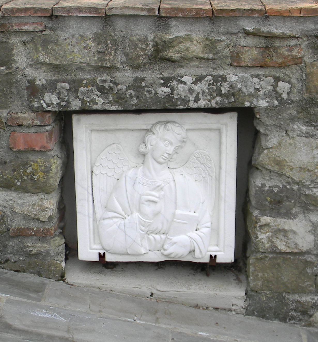 Angel tucked into a wall