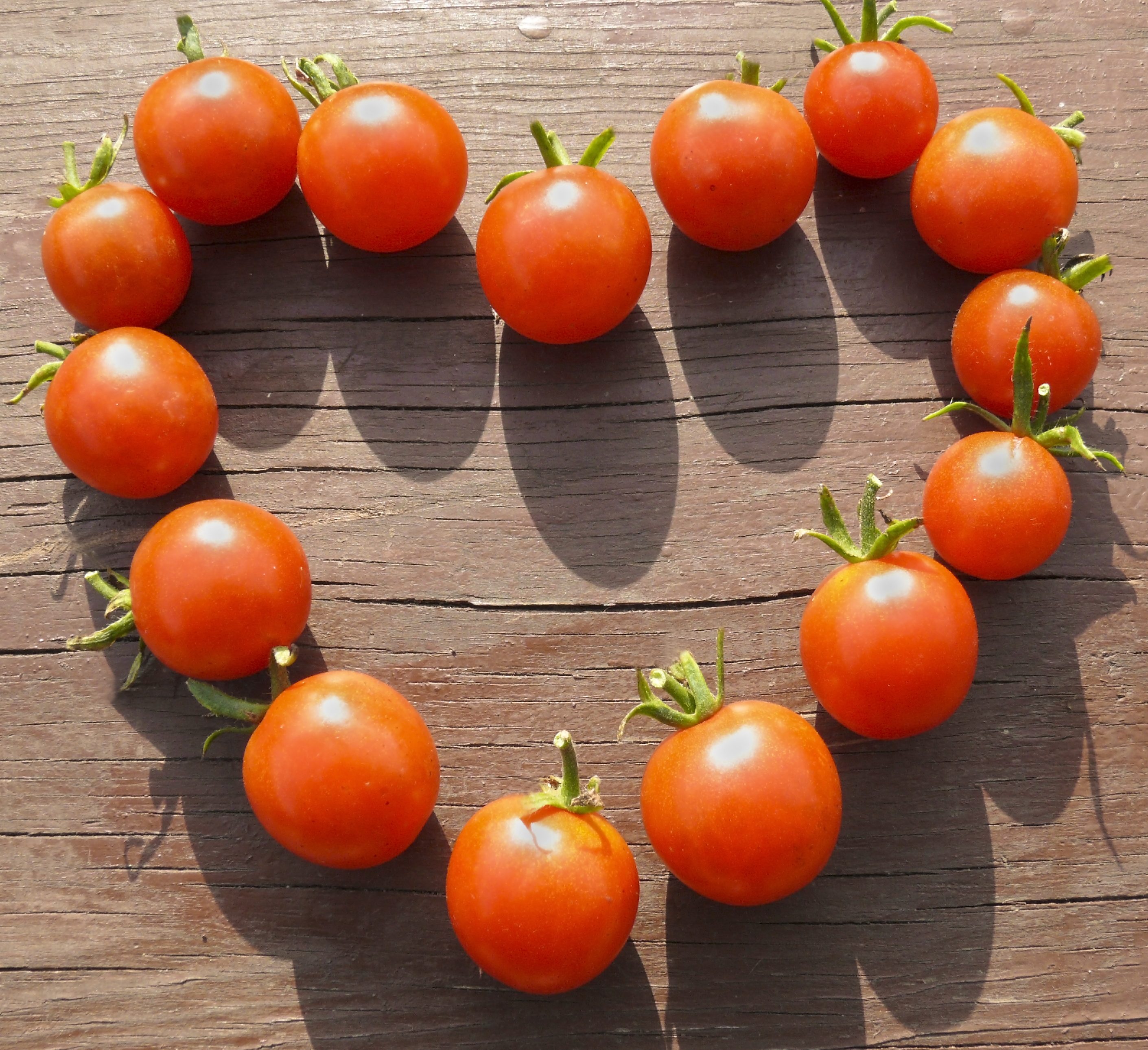 Small decorative tomatoes – composed in the form of heart. Ecological symbol of love